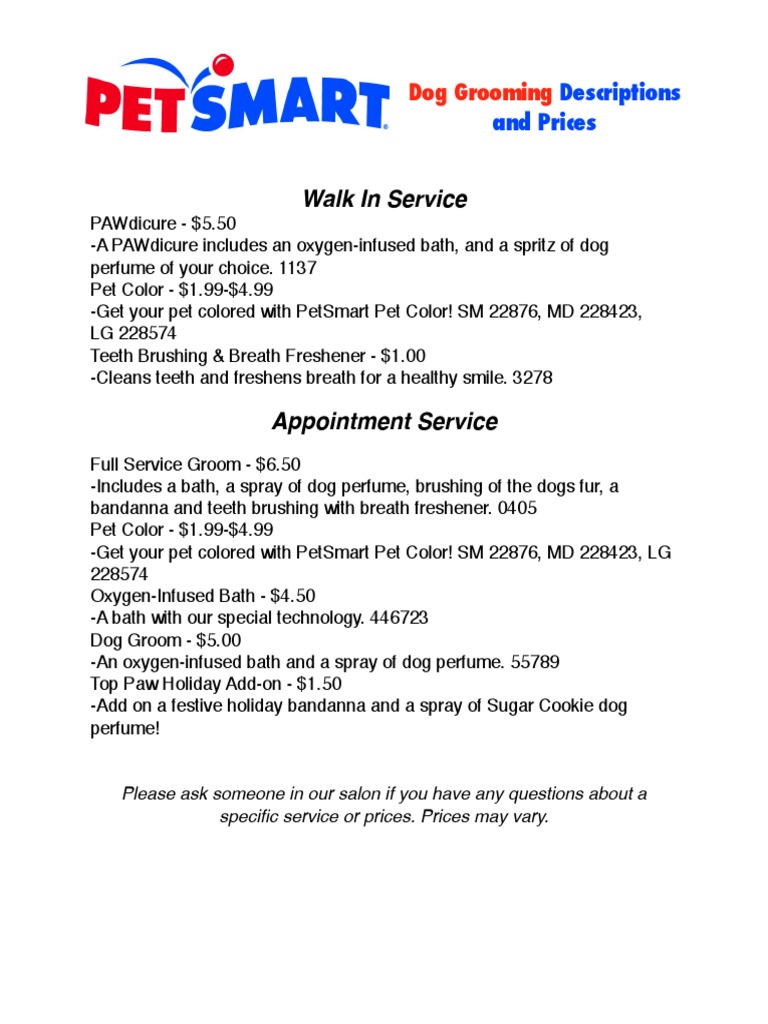 Latest Petsmart Grooming Prices 2017 Petcarepricing Com Petsmart Grooming Petsmart Grooming